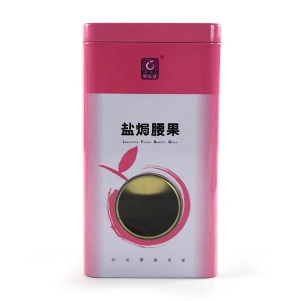 This nuts tin with clear PVC window on its body allows you to see very clearly the nuts packaged inside. It can be with nuts, with gold paint and band of fruits and nuts printed on, to create a picture of vivid pastoral scene.